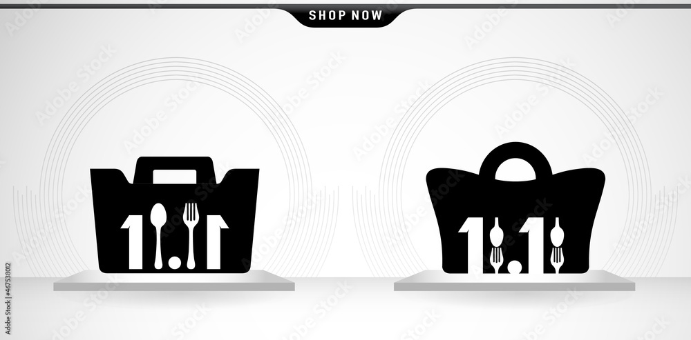 Set Of Labels For Sale Illustration Of Food Bag 11 11 Sale 11 11 Online Sale With Gray Backgrounds For Poster Or Flyer Social Media Banner Web Banner Online Shop Cafe Bistro Restaurant Stock